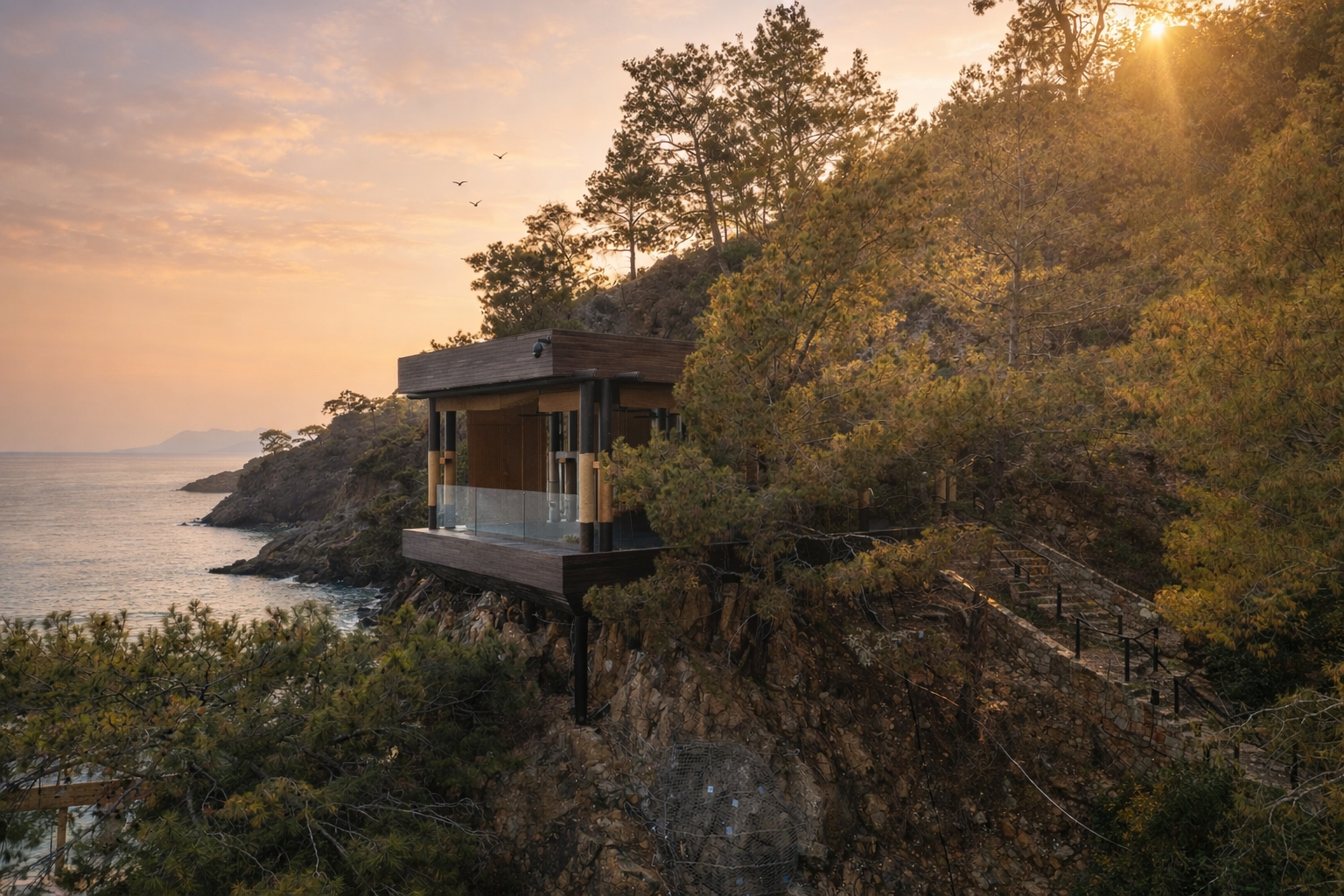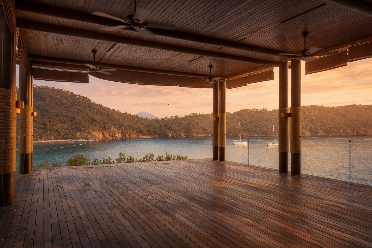 The yoga and spa areas of Ahama Hotel in Göcek were designed and built by Toros and Partners. The project was developed through a holistic approach where architecture, interior design and landscape are considered together within a unified bohemian luxury wellness concept.