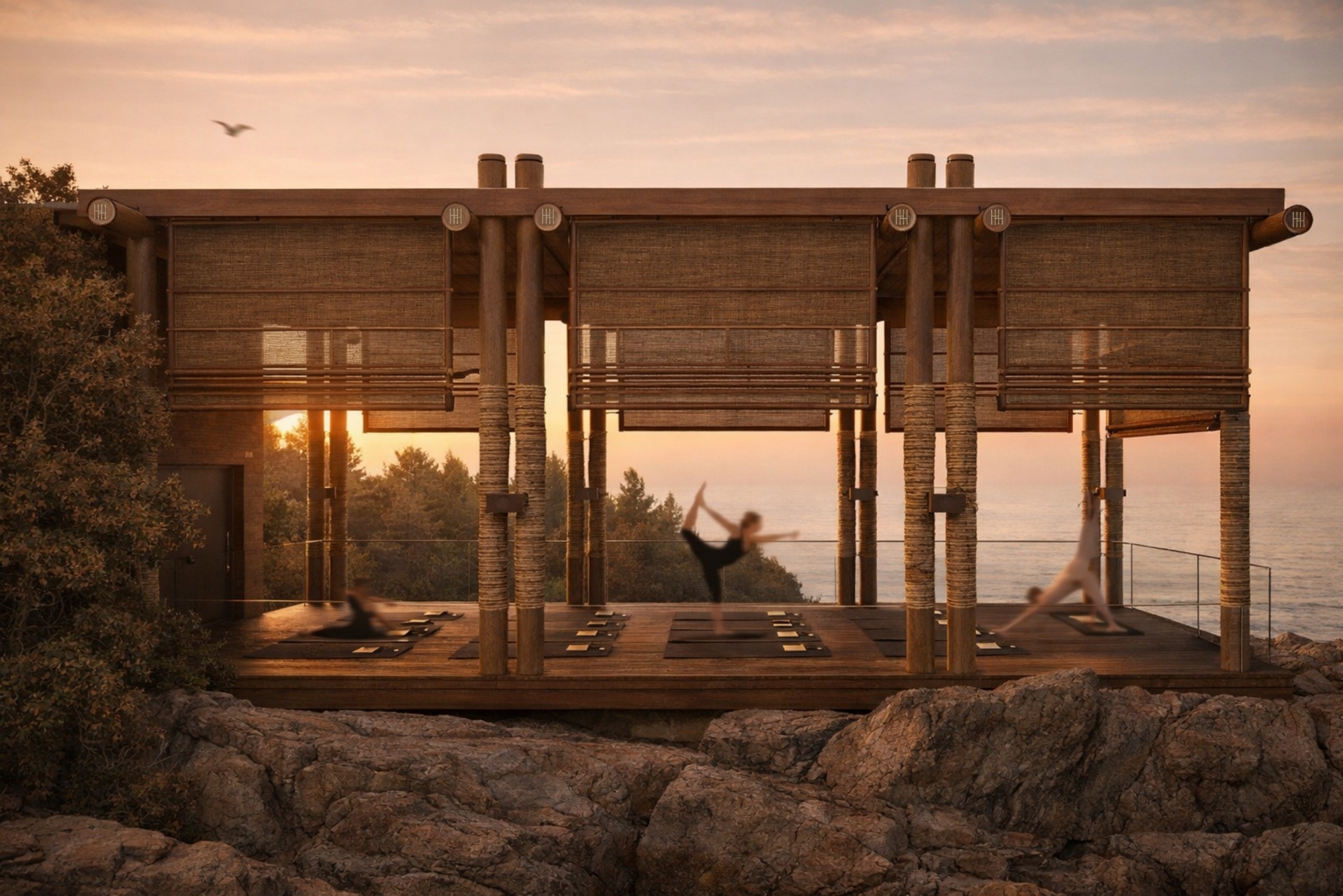 Programs such as Sunrise Yoga, Tai Chi, and Ancient Ritual Ceremonies form an important experiential layer of the space. These practices emphasize slow movement, awareness and connection with nature, shaping the spatial atmosphere of the environment.