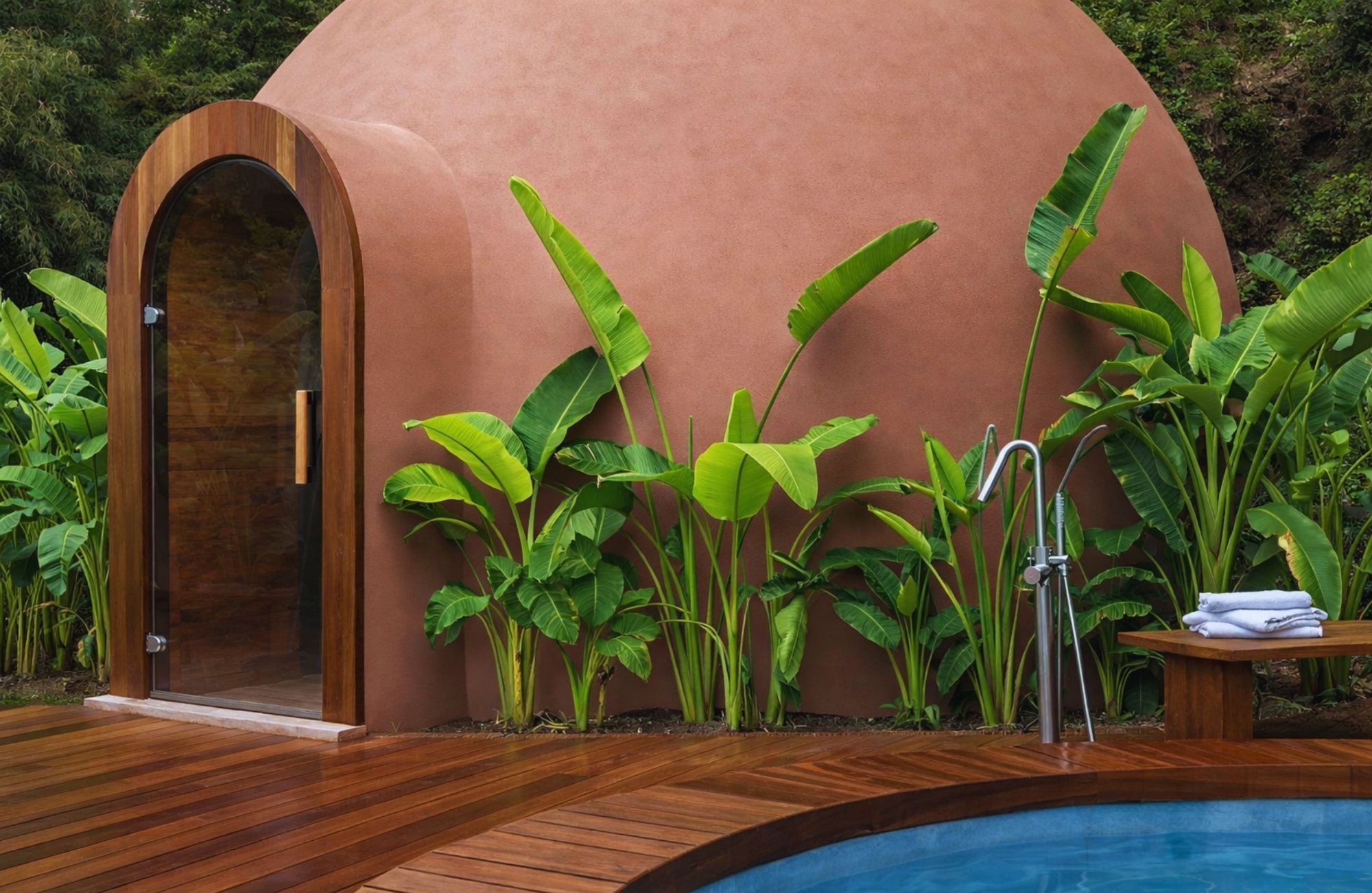 The spa area is organized around a dome form, intended to create an immersive and protective spatial atmosphere. At the center of the dome, a steam room forms the core of the spa experience.