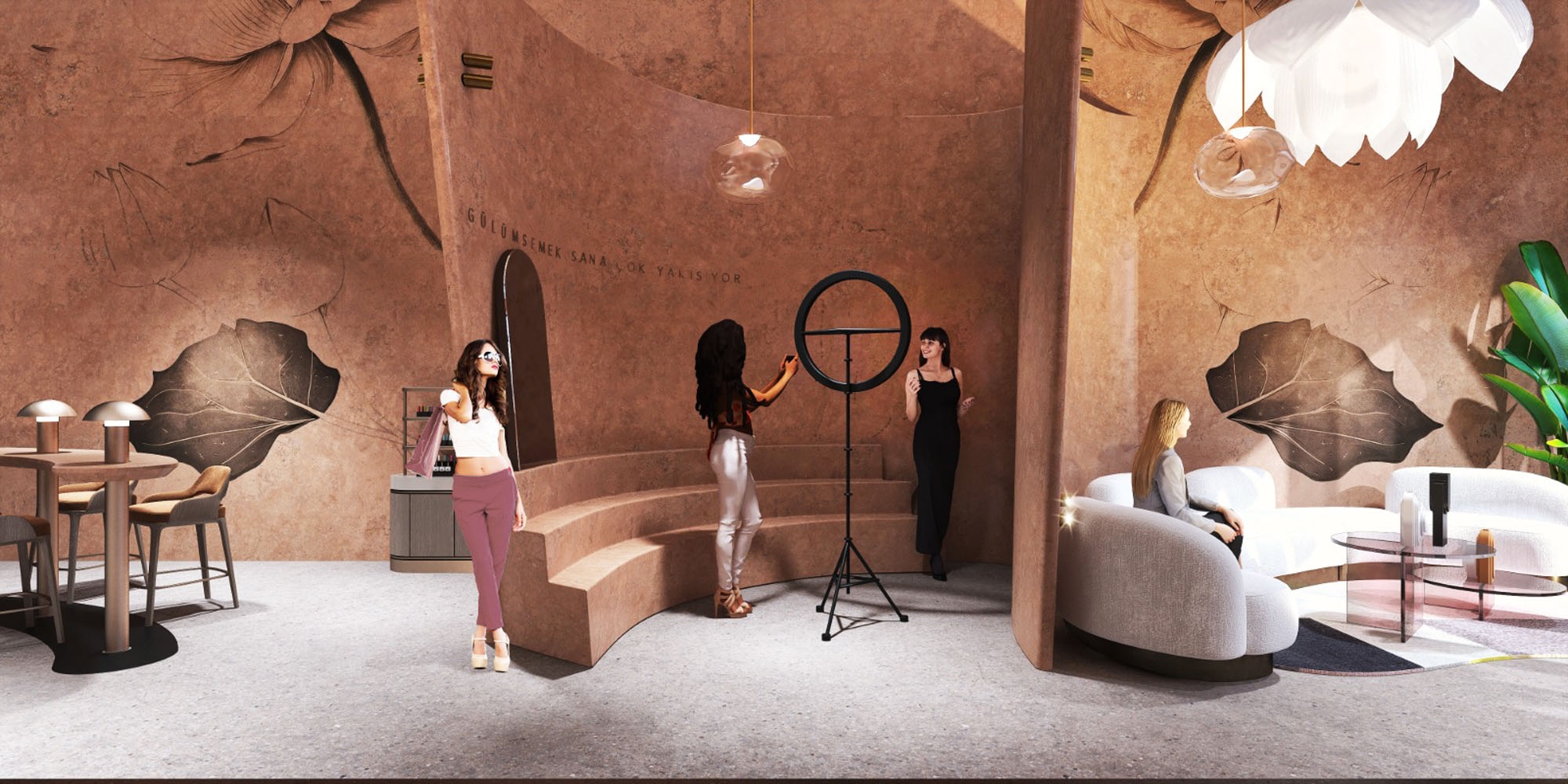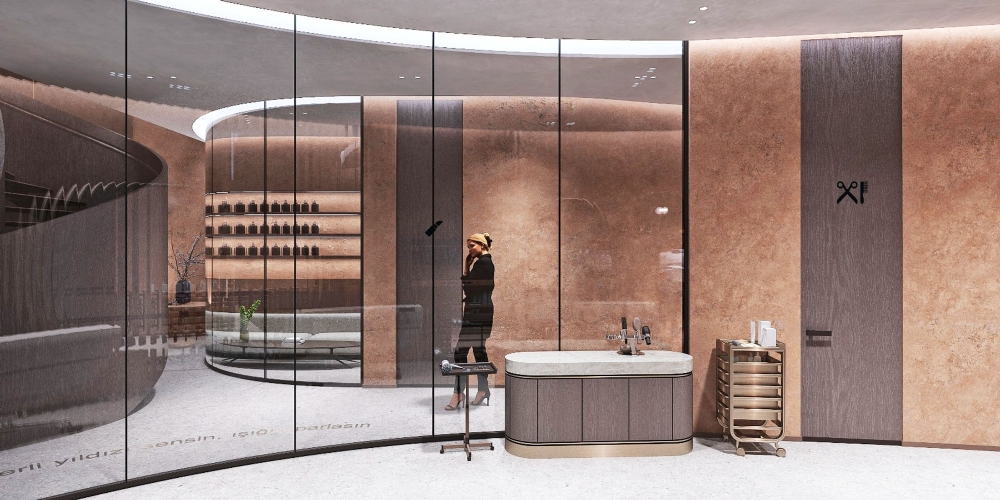 Amara Güzellik Salonu, Toros and Partners tarafından öz bakım anlarıyla ilişkilendirilen dönüşüm fikri etrafında tasarlandı. Proje, çiçek açma metaforunu doğrudan bir temsil yerine mekansal süreklilik ve form dili üzerinden yorumluyor. Girişte konumlanan özel enstalasyon, bu anlatıyı soyut bir yaklaşımla karşılayan sakin bir odak noktası oluşturuyor.