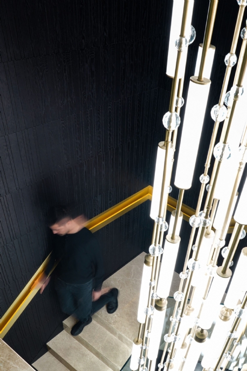 Dentakay markasına özel olarak tasarlanan diş polikliniği, Toros and Partners tarafından İstanbul’da, sağlık mekanlarına özgü hassasiyet ile çağdaş bir mekansal dilin dengelenmesi amacıyla ele alındı. Klinik kurgusunda hijyen algısını güçlendiren sade yüzeyler, kontrollü ışık kullanımı ve akışkan dolaşım kararları ön plana alınırken, mekana karakter kazandıran odak noktası merdiven kovasında konumlanan, projeye özel tasarlanıp üretilen aydınlatma enstalasyonu oldu. Düşey boşluk boyunca devam eden bu enstalasyon, mekana yön veren bir ışık elemanı olarak klinik içinde güçlü bir görsel süreklilik oluşturuyor. Tasarım ve uygulama süreçleri Toros and Partners tarafından yürütülen proje, Dentakay markasının çağdaş ve güven veren kimliğini bütüncül bir iç mekan anlayışıyla yansıtmayı amaçladı.