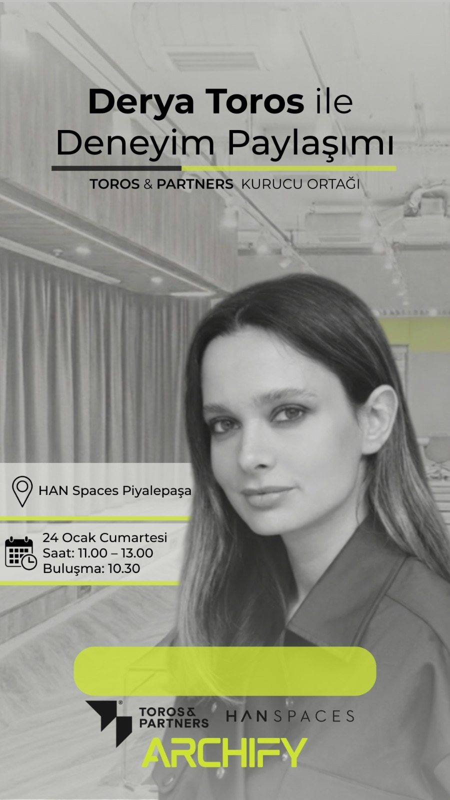 Derya Toros met with students and recent graduates at Han Spaces Piyalepaşa with Archify. The session included a guided space tour and insights into design processes, project experience, and professional practice.