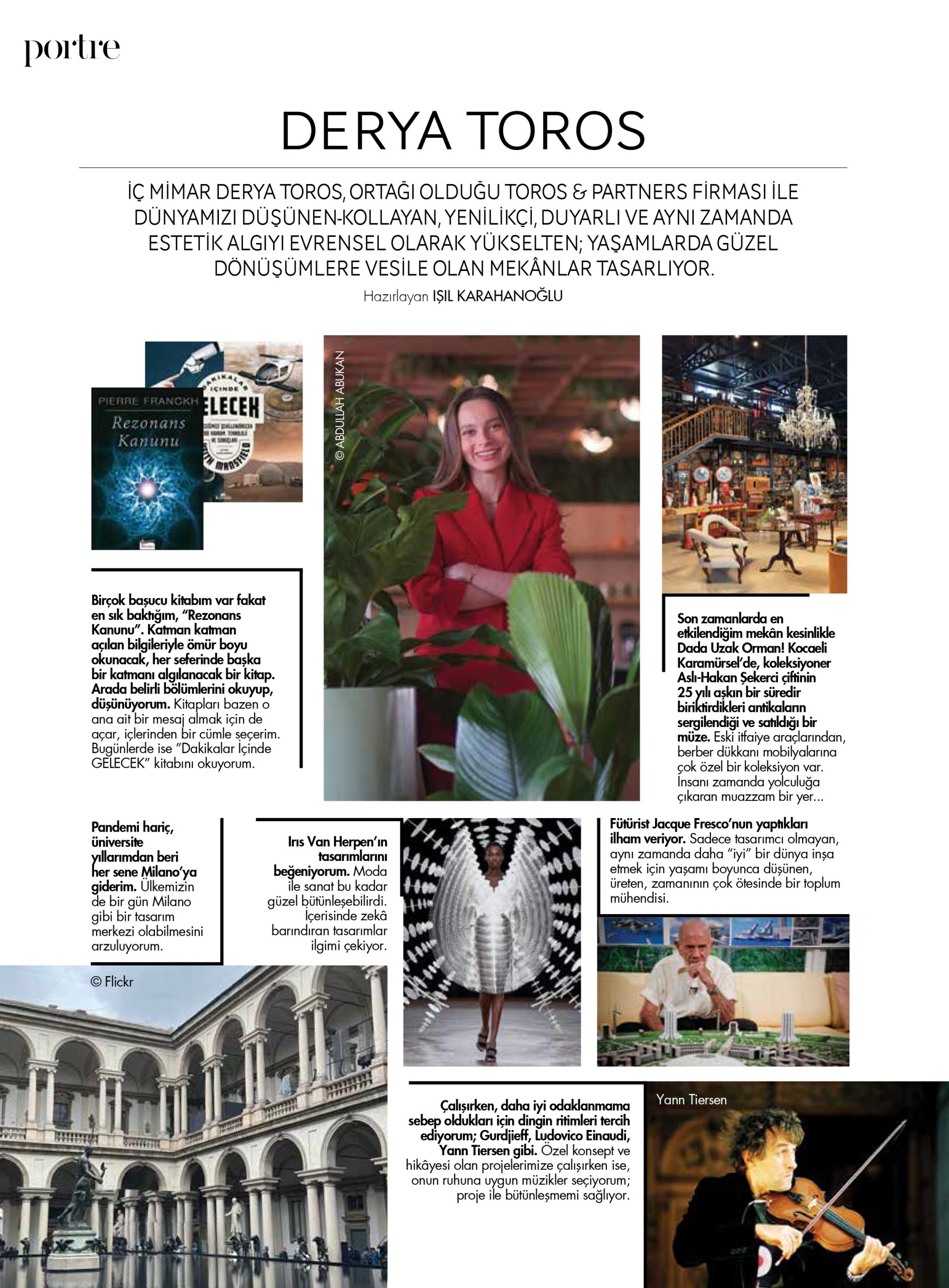 Derya Toros, Marie Claire Maison dergisinin portre bölümünde yer alıyor. Mimarlık, sanat, moda ve gündelik yaşamdan beslenen ilham dünyası üzerinden şekillenen bu seçki, Toros and Partners’ın tasarım yaklaşımını besleyen çok katmanlı bakışı görünür kılarken, üretim pratiğinin arkasındaki düşünce dünyasına daha kişisel bir çerçeve sunuyor.