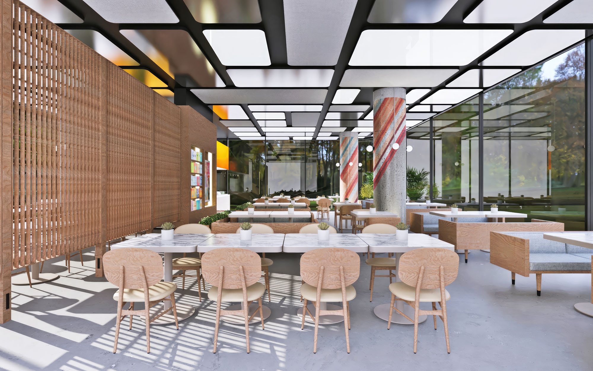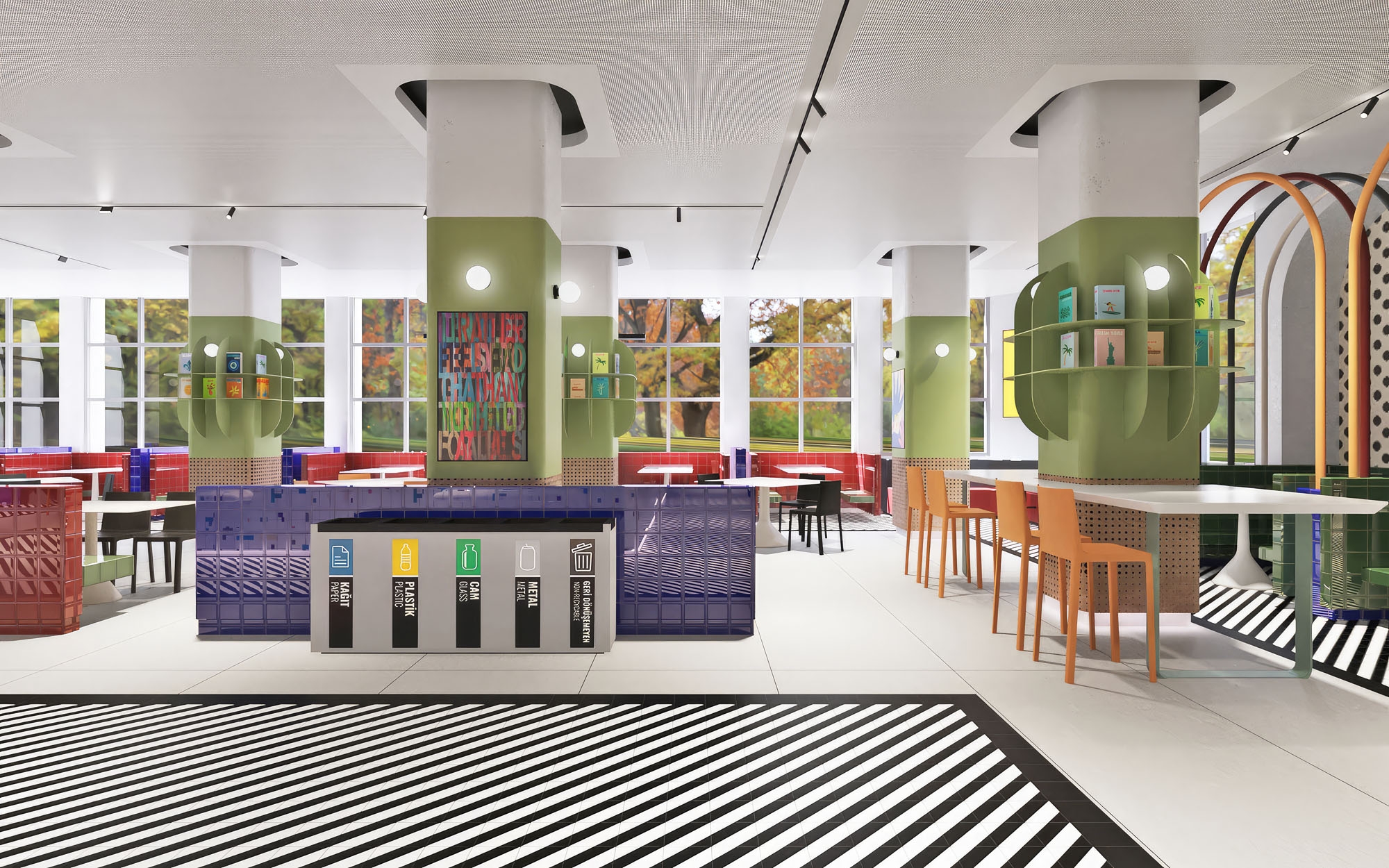 Eyüboğlu Okulları için tasarlanan öğrenci yemekhanesi, öğretmen yemekhanesi ve konferans salonu, eğitim yapılarında kullanıcı deneyimini merkeze alan çağdaş bir iç mimari yaklaşımıyla ele alındı. Toros and Partners tarafından geliştirilen proje kapsamında, özellikle öğrenci yemekhanesi renkli, enerjik ve playful bir konseptle kurgulanarak öğrencilerin sosyalleşmesini destekleyen, dinamik ve motive edici bir mekansal atmosfer oluşturuldu. Öğretmen yemekhanesi daha sakin ve dengeli bir dil ile tasarlanarak gün içindeki yoğun tempoya karşı konforlu bir dinlenme alanı sunarken, konferans salonu ise çok amaçlı kullanım senaryolarına uyum sağlayacak akustik ve fonksiyonel çözümlerle planlandı. Eğitim yapıları için geliştirilen bu bütüncül tasarım yaklaşımı, okul iç mimarisi, öğrenci alanı tasarımı ve çağdaş eğitim mekanı kurgusu konularında Toros and Partners’ın deneyimini yansıtan bir çalışma olarak öne çıkmaktadır.