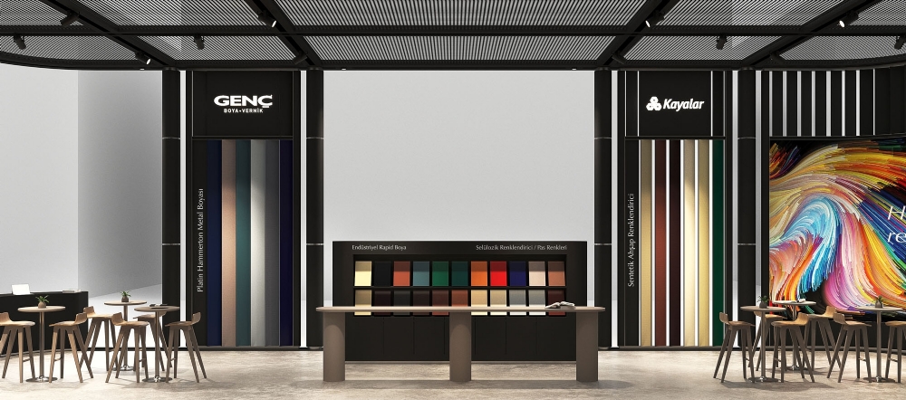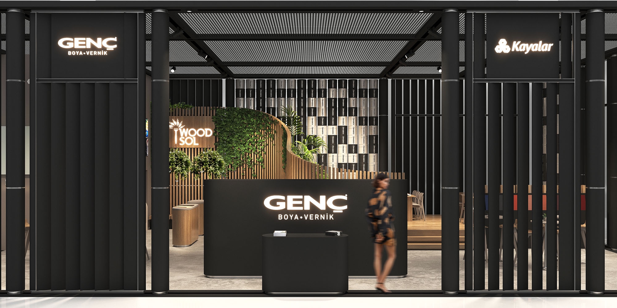 Kayalar Kimya’nın farklı endüstriyel alanlarda üretim gerçekleştiren markası Genç Boya için, Toros and Partners tarafından St. Folks iş birliğiyle tasarlanan fuar standı, İstanbul Intermob Fuarı kapsamında markanın yenilikçi ve dinamik karakterini mekansal bir anlatı üzerinden ele alındı. Stand tasarımında renk, yüzey ve hacim ilişkisi ön plana alınarak, ürünlerin teknik niteliğini destekleyen çağdaş bir sergileme dili oluşturuldu. Açık ve akışkan dolaşım kurgusu, ziyaretçilerin stand içinde doğal bir hareketle ilerlemesine olanak tanırken, farklı ürün gruplarının bütüncül bir düzen içinde algılanması hedeflendi.