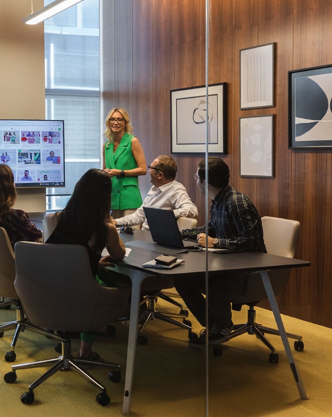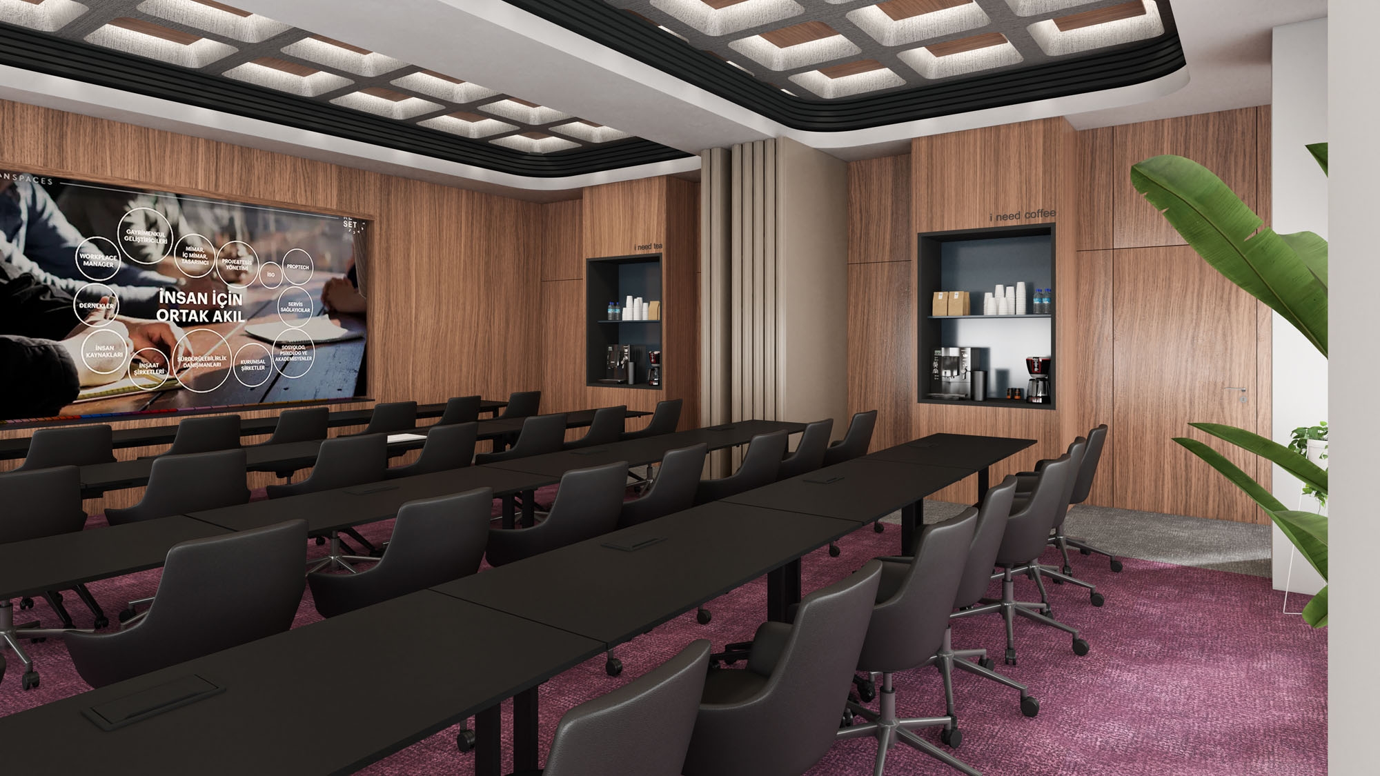 Teknolojik altyapı tasarımın ayrılmaz bir parçası olarak kurgulanmış; dijital toplantı sistemleri, hibrit çalışma altyapısı ve esnek kullanım çözümleri mekansal deneyimi destekleyecek şekilde entegre edilmiştir. Ergonomi, akustik performans ve sürdürülebilir malzeme seçimi proje boyunca temel tasarım kriterleri olarak ele alınmıştır.