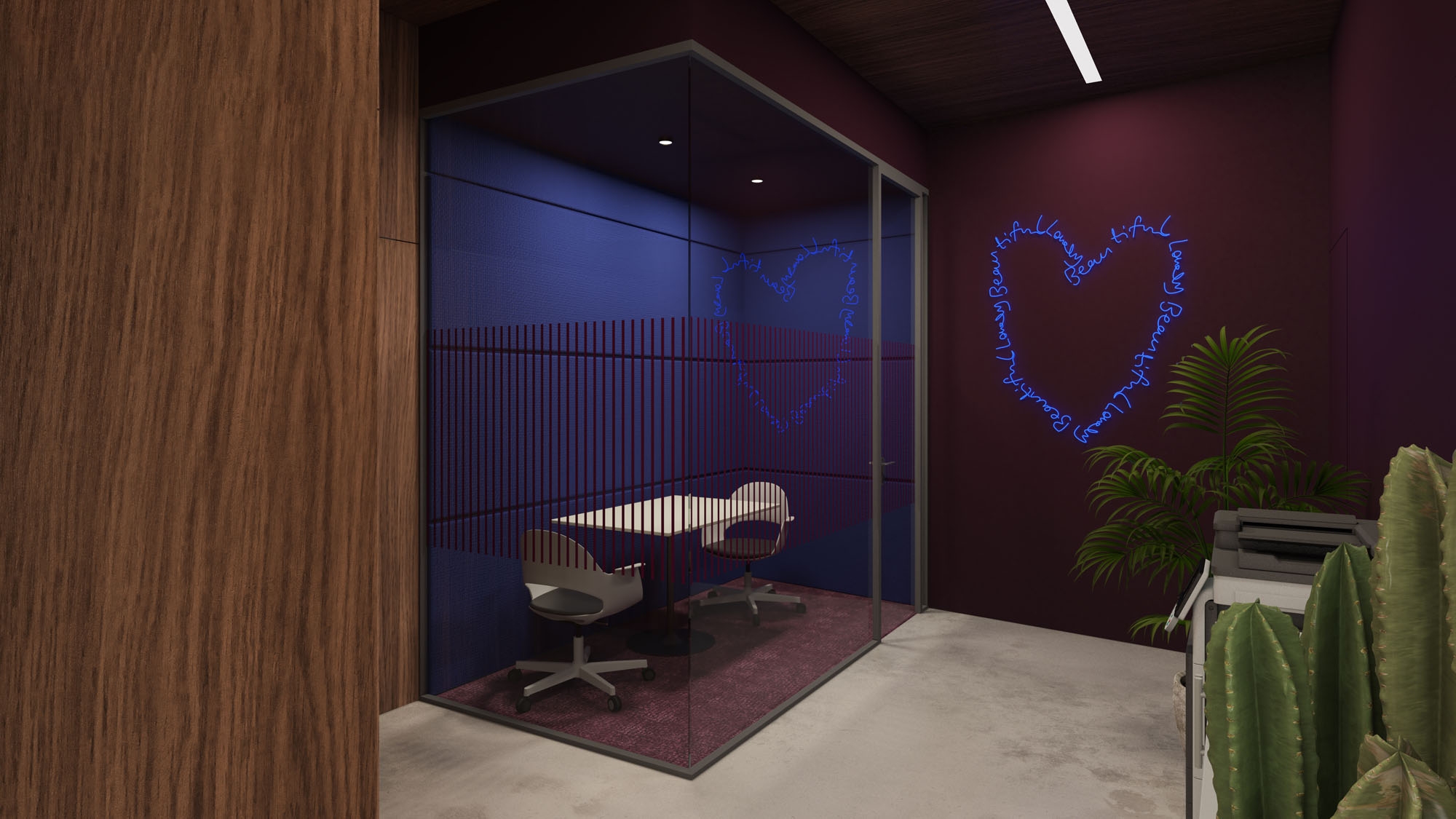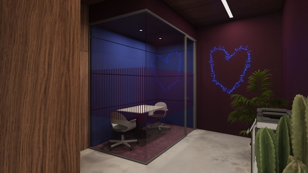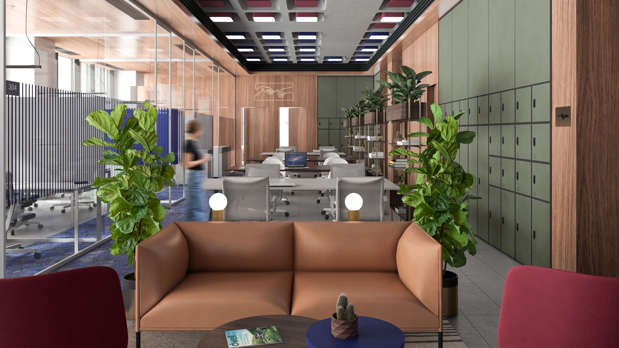 Proje kapsamında esnek çalışma senaryolarına uyum sağlayan coworking alanları, özel ofisler, toplantı odaları, sessiz çalışma alanları ve sosyal mekanlar bütüncül bir mekansal kurgu içinde ele alınmıştır. Kullanıcı deneyimini merkezine alan tasarım yaklaşımı; iş birliğini teşvik eden açık alanlar ile odaklanmayı destekleyen kontrollü mekanlar arasında dengeli bir ilişki kurmuştur.