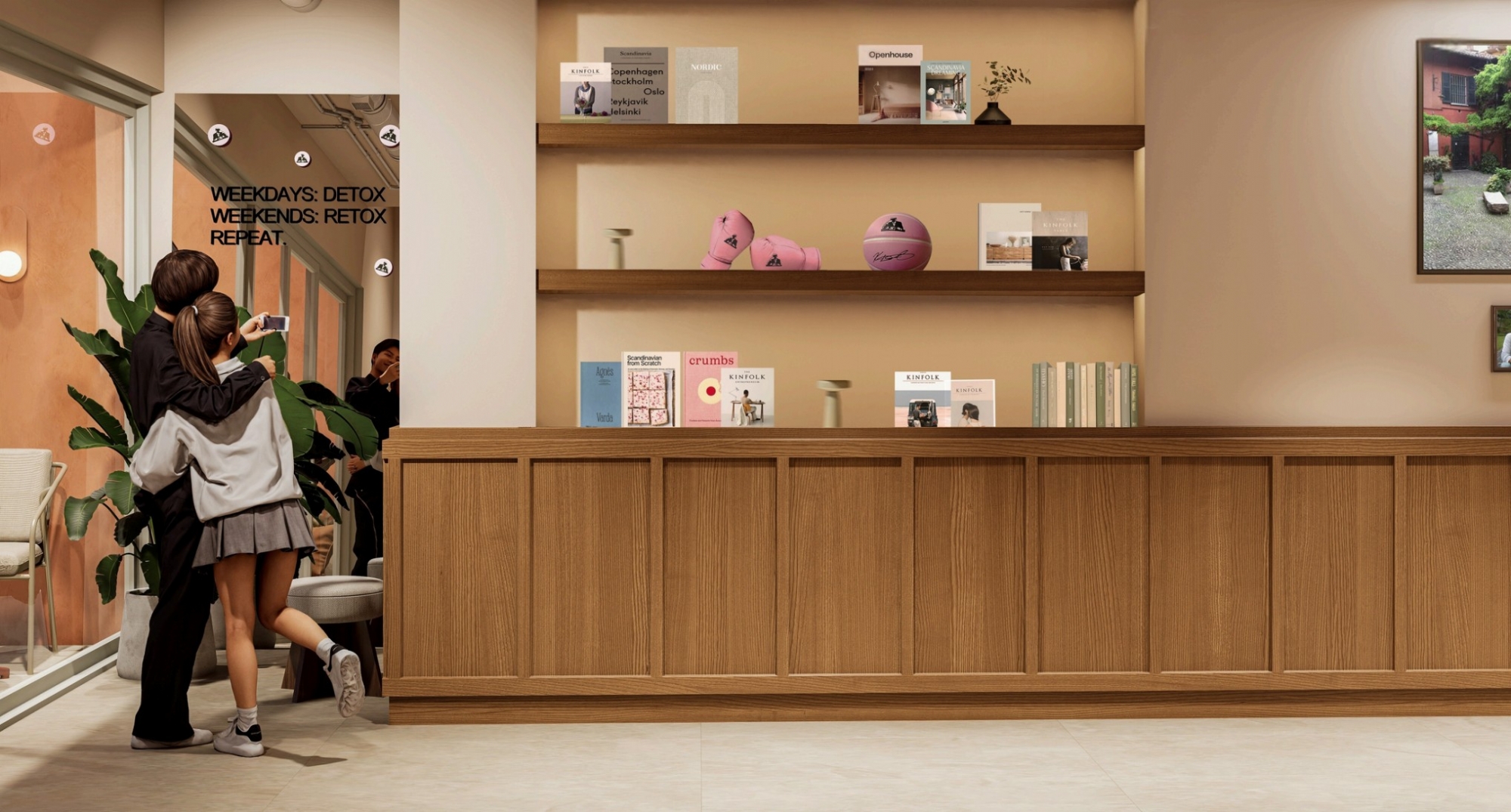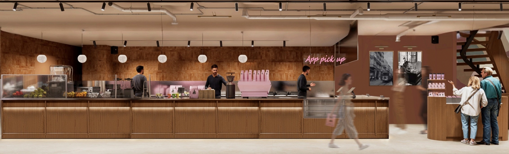 Inside the store, wall surfaces narrate the Joe & the Juice brand story, translating the company’s origins, values, and lifestyle into a spatial experience. These graphic and narrative elements strengthen the emotional connection between the brand and its users, transforming the interior into an experiential environment rather than a purely functional one.